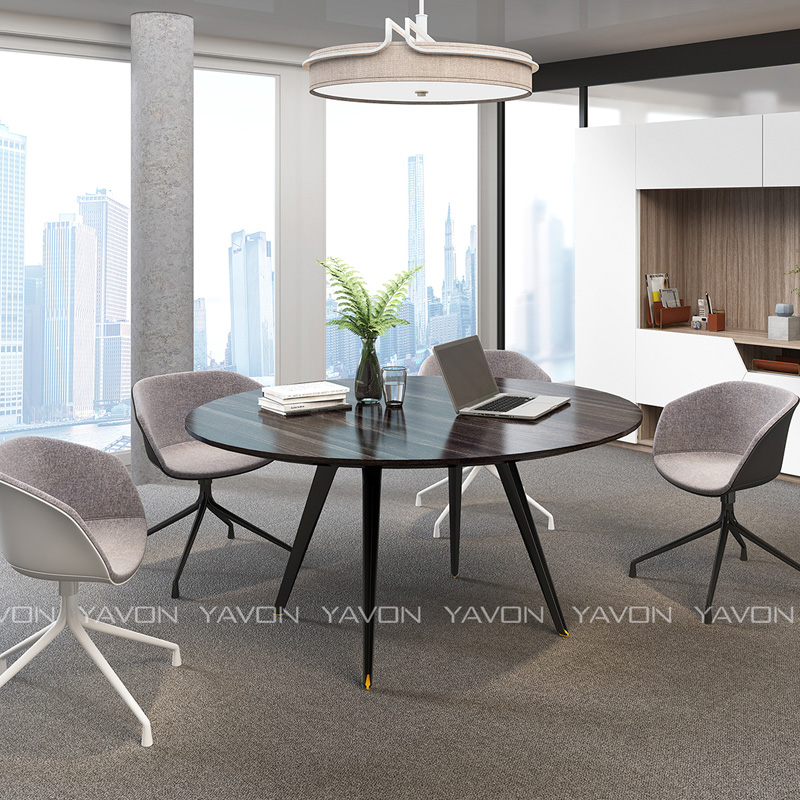 X洽談桌采用多種桌面顏色,基材選用松木、樺木等樹木的枝丫材,經(jīng)切碎、篩選、脫水等工序后,施加酚醛樹脂粘合而成的一種人造板材。其內(nèi)部結(jié)構(gòu)表現(xiàn)為顆粒狀。因此具有板面平整、挺實、物理力學(xué)強度高、尺寸穩(wěn)定、抗沖擊強度高、握釘力強等特點。板材貼紙采用的是進口”夏特紙“,屬于目前國際上頂級裝飾紙。